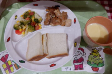 ホーム > > フロントページ フロントページ 今日はクリスマス。子ども達は保育者はクリスマスカラーを付けての登園です。 サンタさんからのプレゼントやゲームを行いました。子どもたちが1番楽しみにしていたのが、クリスマスメニューです。