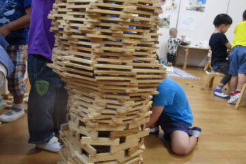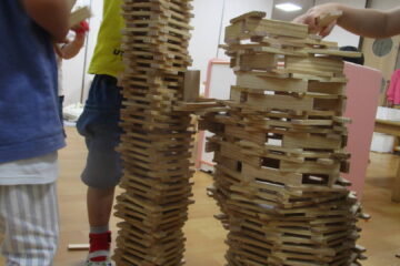 子ども達と積み木遊びをしていくうちにどんどん高く積めるようになりました。